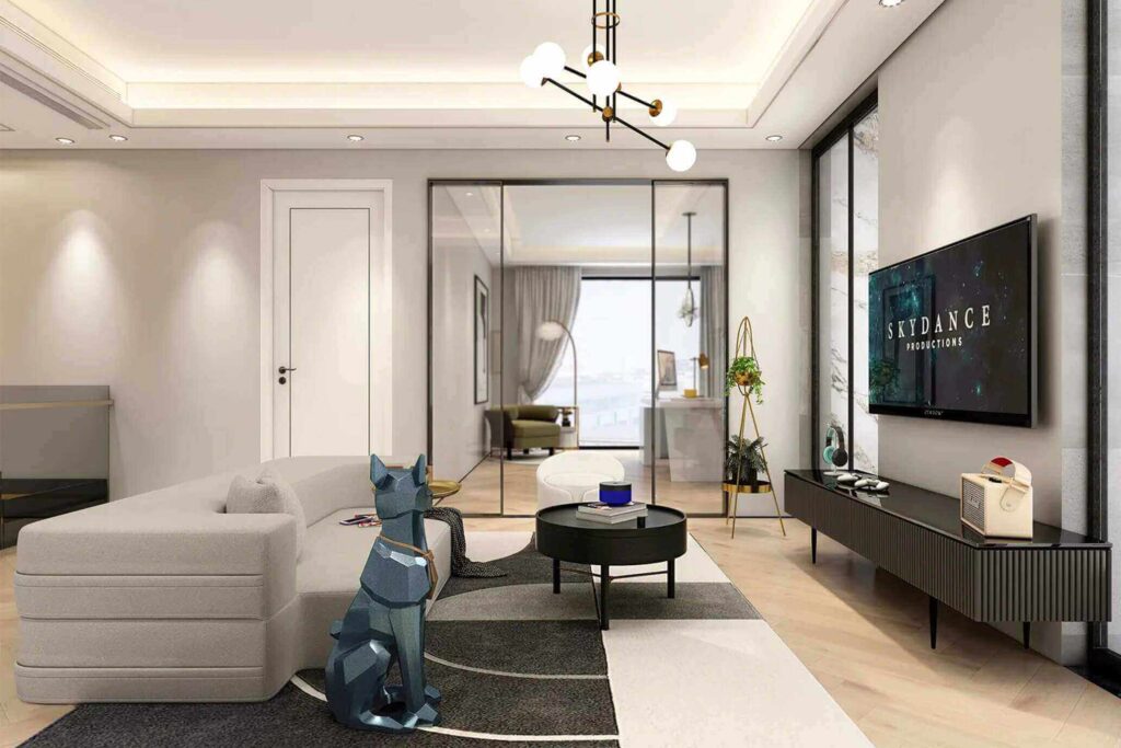 Thiết Kế Phòng Khách Hiện Đại Với Tông Màu Trắng Và Xám